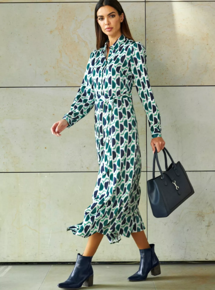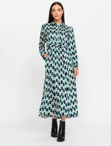 Deze overhemdjurk met dessin – geometrisch patroon combineert moeiteloos stijl met comfort en is dé keuze voor de modebewuste vrouw. Het levendige geometrische patroon en de klassieke snit maken deze jurk een essentieel stuk in elke garderobe.