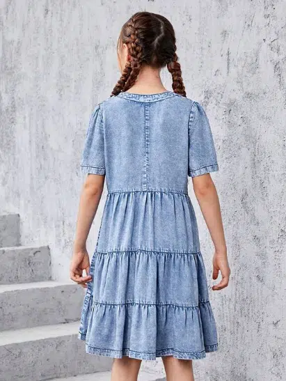 Belangrijkste kenmerken van OnlyGirlzz blauwe meisjesjurk met denim-look