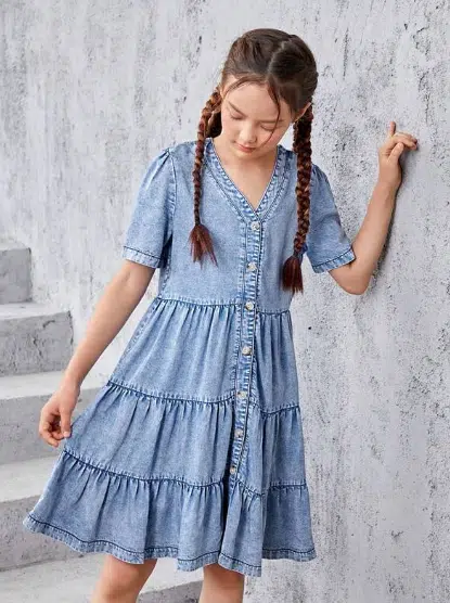 Waarom kiezen voor OnlyGirlzz blauwe meisjesjurk met denim-look